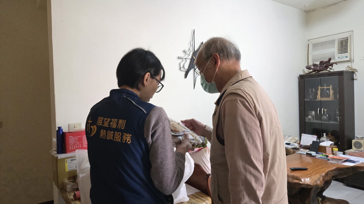 當天社工提著年菜上門時,長輩早已在門口等候。