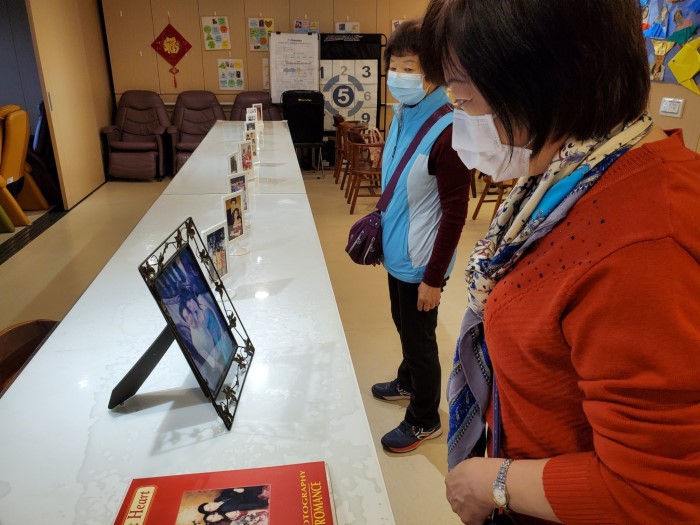 只見阿嬤換上衣櫃裡尚紅、尚水的衣服,阿公穿上塵封已久的西裝,大家紛紛盛裝出席。事先向長輩蒐集的老照片,也在現場一字排開,像是凝結各種回憶的時光迴廊。