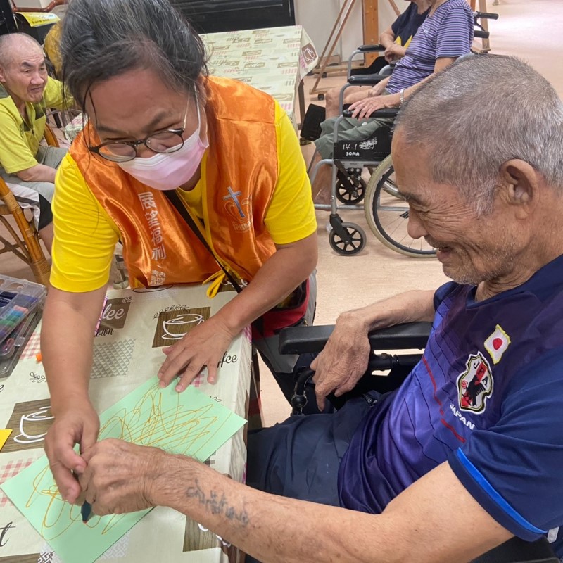 十月的第一個早晨,陽光灑落在通霄鎮的「財團法人苗栗縣私立海青老人養護中心」,伴隨著一聲聲爽朗的笑聲,「摺紙創意課」就這樣熱鬧展開啦!