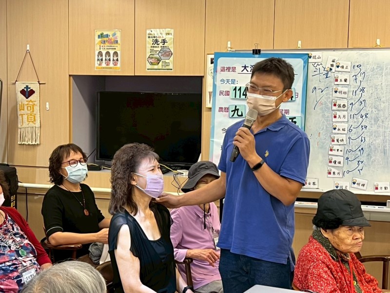 活動由照服員帶著長輩們進行「暖身拍打操」揭開序幕~