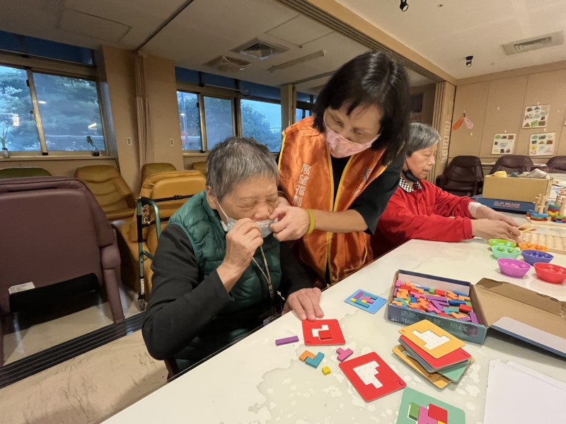 彭大姊原本在日照中心擔任清潔工作,因緣際會下成為這裡的一份子。一次與社工聊天時,她分享自己想做善事,卻不知道從何開始,也擔心無法融入。社工告訴她:「陪伴,其實也是一種安靜的力量。」