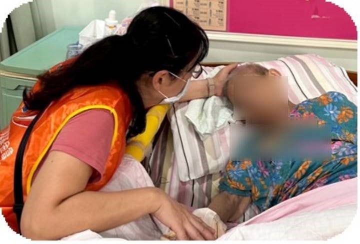 有一次,倡導關懷人走到床邊關心,發現她不停扭動身體,用手比劃皮膚癢的不適。倡導關懷人立即代為轉達護理師,照服員隨即協助處理,讓王奶奶的需求被即時聽見與回應。