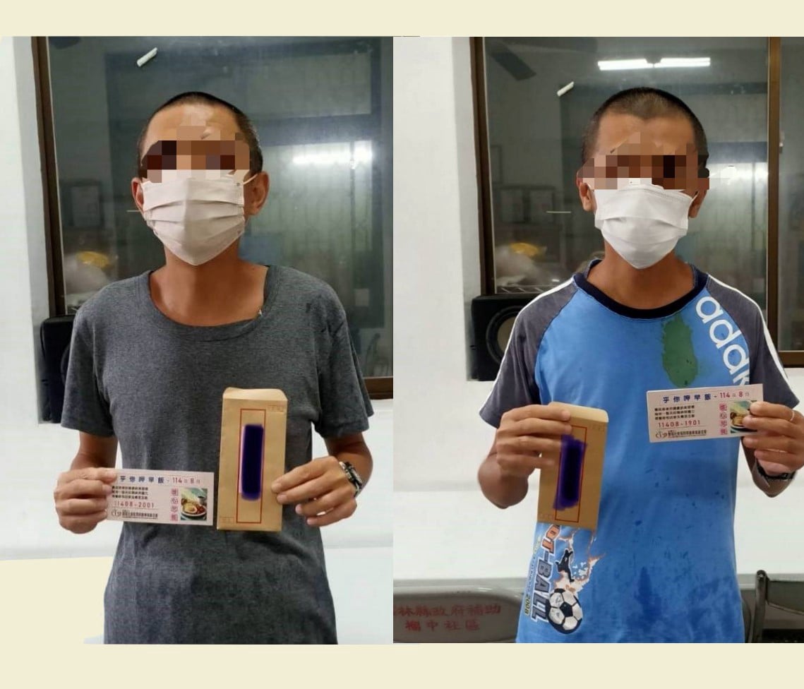 ▲二個兒子領取早餐券