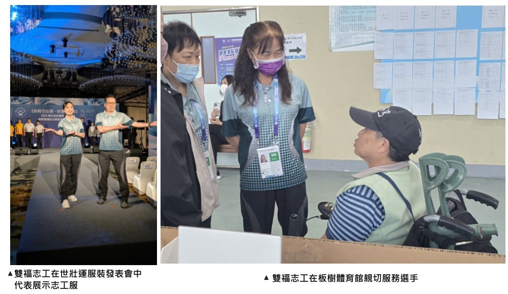在世壯運中,雙福除了承接志工服務中心,也在誓師記者會中,由志工們以充滿活力的表演揭開序幕,更在板樹體育館 5 天的賽事裡,提供了 65 人次的服務!